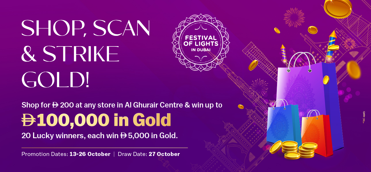 من 13 إلى 26 أكتوبر 2025، يمكن للمتسوقين في المراكز التجارية المشاركة الانضمام إلى حملة السحب الرقمية "تسوق، امسح واربح الذهب" والفوز بذهب تصل قيمته إلى 100,000 درهم!